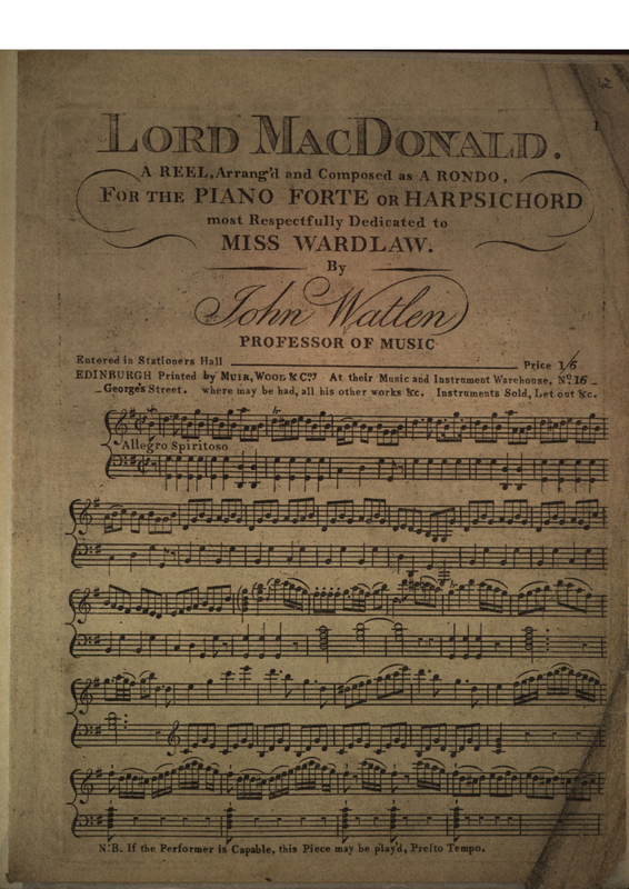 | Alternative. Title | Lord MacDonald. A Reel, arranged and composed as a Rondo, for the piano forte or harpsichord |