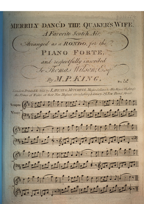 | Alternative. Title | Merrily danc'd the Quaker's wife, a favorite Scotch Air, arranged as a Rondo, for the Piano Forte |