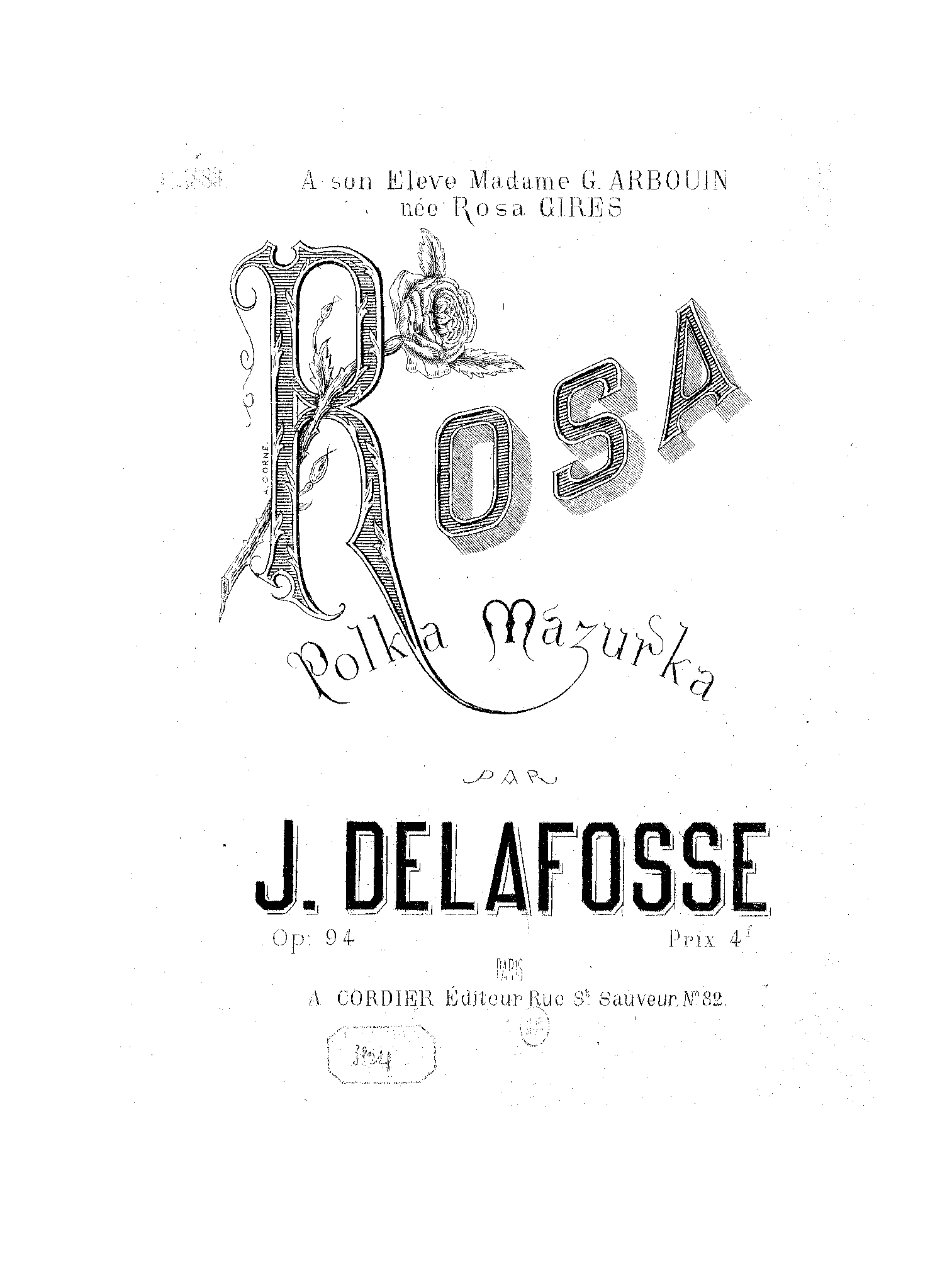 | Dedication | à son élève Madame G. Arbouin, née Rosa Gires |