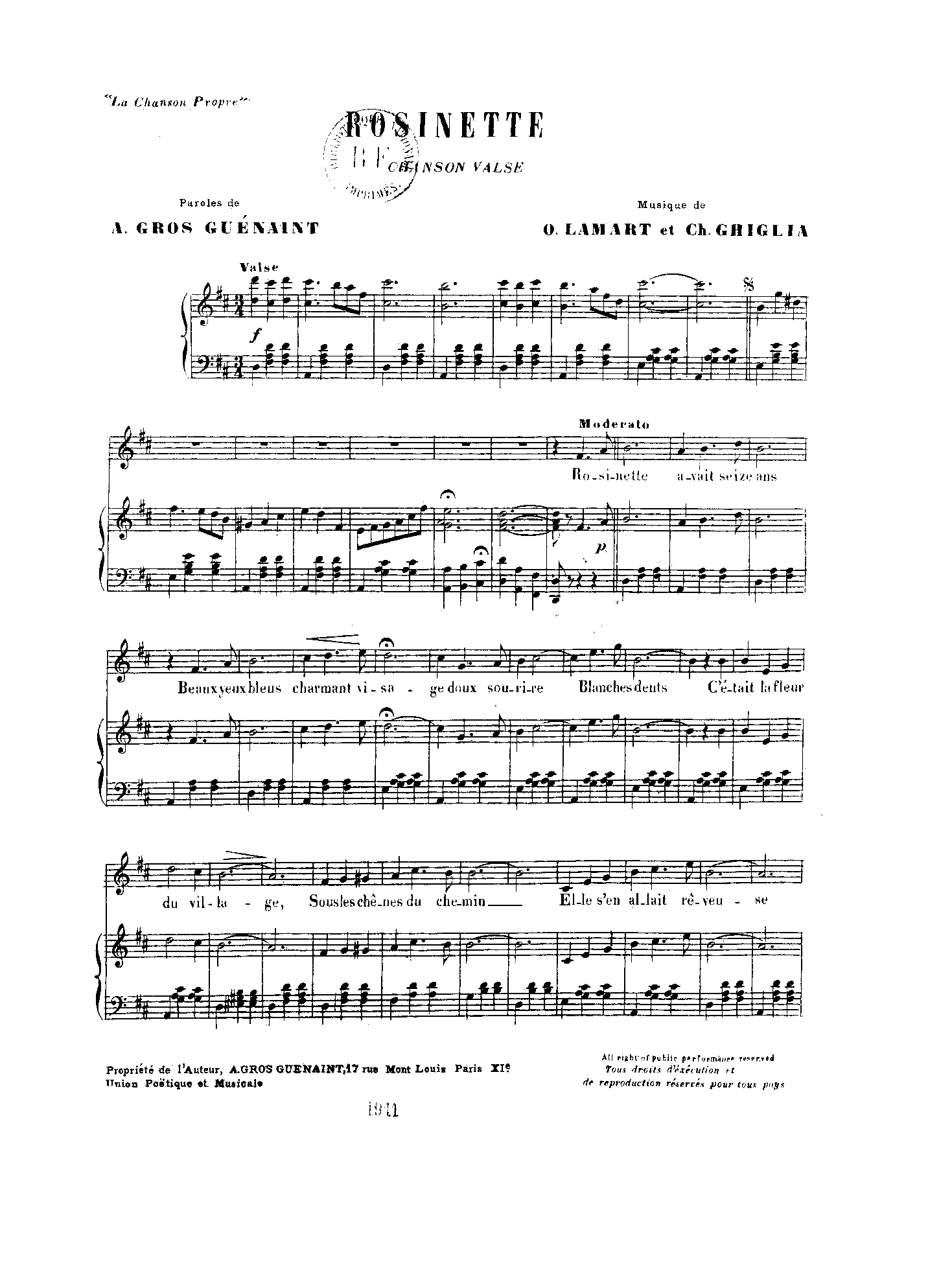 | Librettist | Auguste Gros Guénaint (fl.1910) |