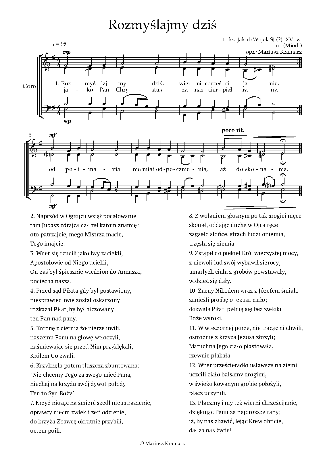| Alternative. Title | Rozmyślajmy dziś, wierni chrześcijanie |
