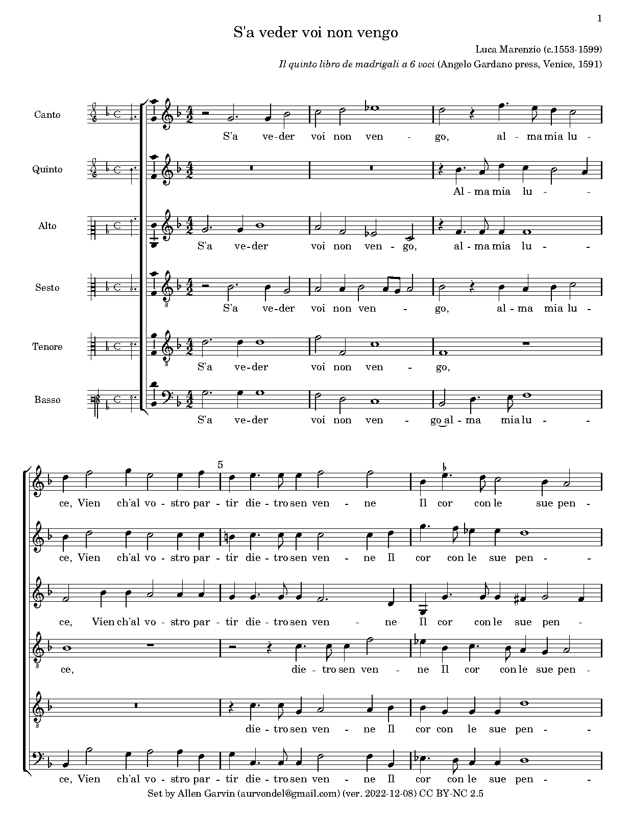 | First Publication | 1591 in Il quinto libro de madrigali a 6 voci (Venice: Angelo Gardano press) |