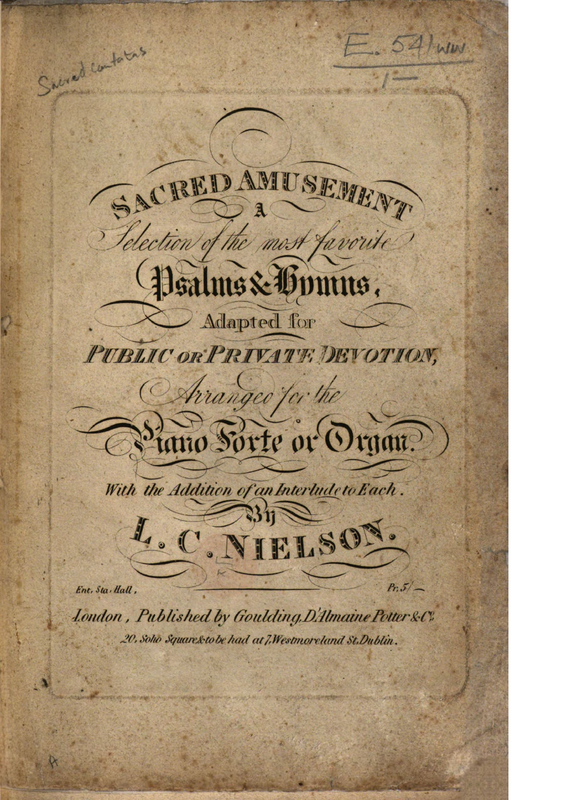 | Alternative. Title | Sacred Amusement. A Selection of the most favorite Psalm & Hymns, adapted for Public or Private Devotion, arranged for the Piano Forte or Organ. With the Addition of an Interlude to Each. |