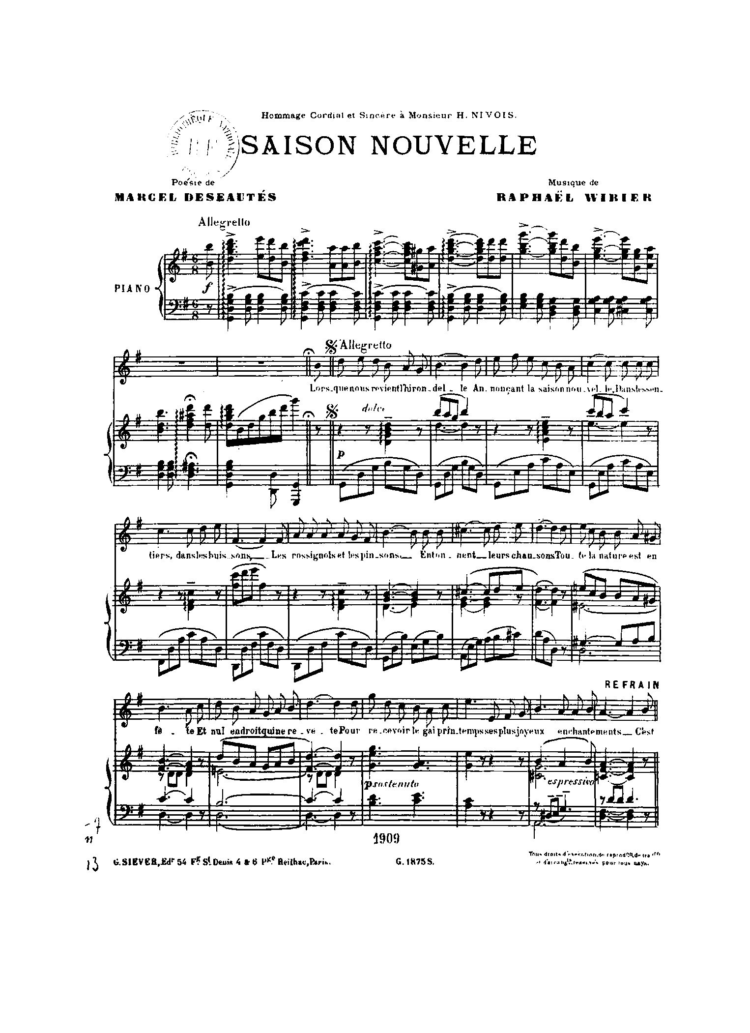 | Dedication | Hommage cordial et sincère à Monsieur H. Nivois |