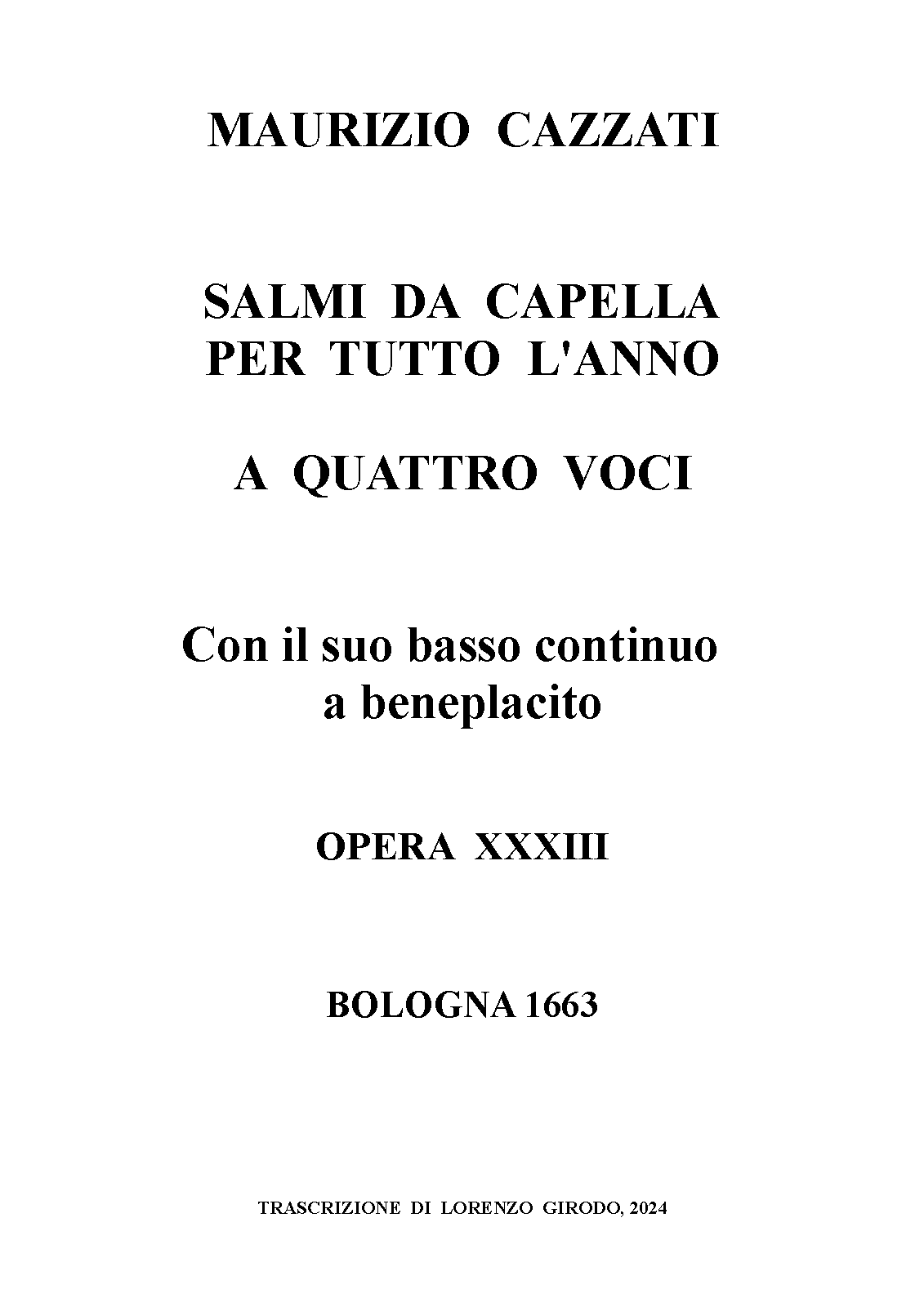 Salmi da capella per tutto l'anno a quatro voci, col suo basso continuo