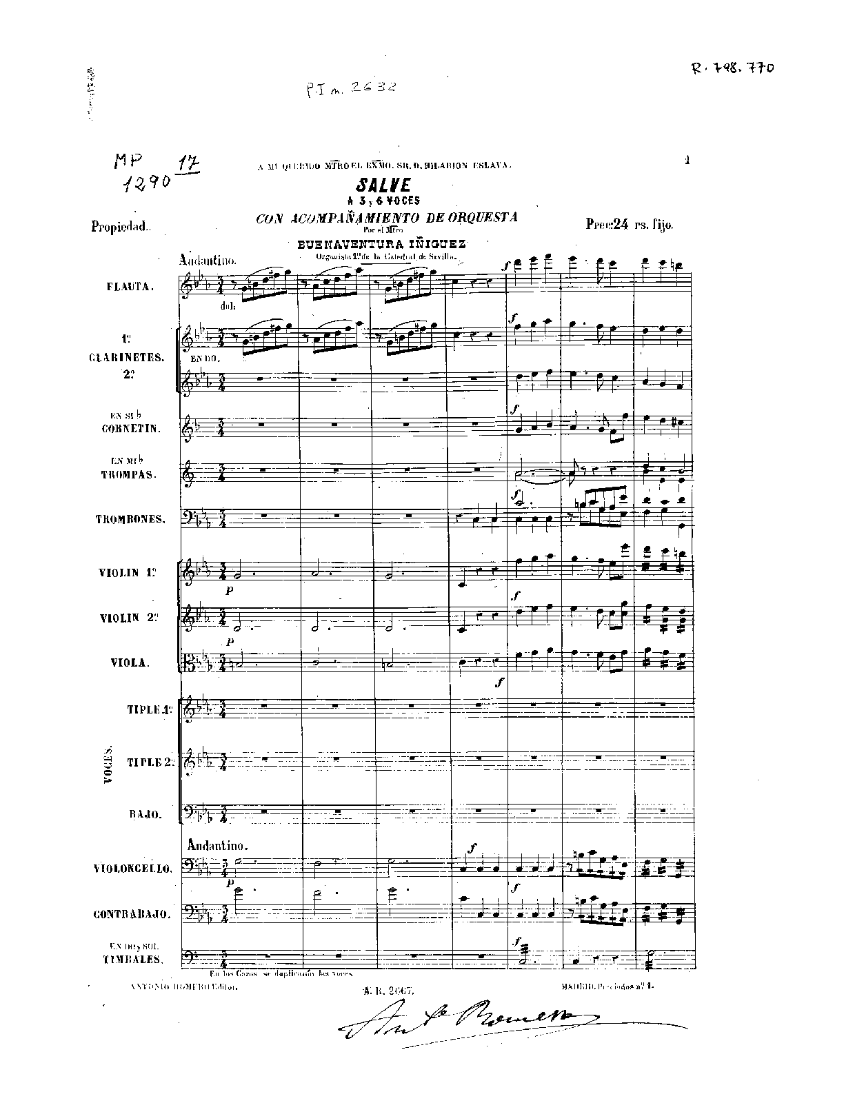 | Alternative. Title | Salve a 3 y 6 voces con acompañamiento de orquesta |