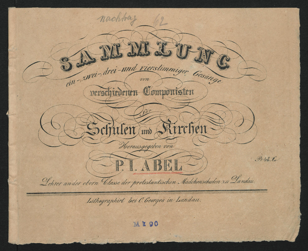 | Alternative. Title | Sammlung ein-, zwei-, drei- und vierstimmiger Gesänge von verschiedenen Componisten für Schulen und Kirchen |