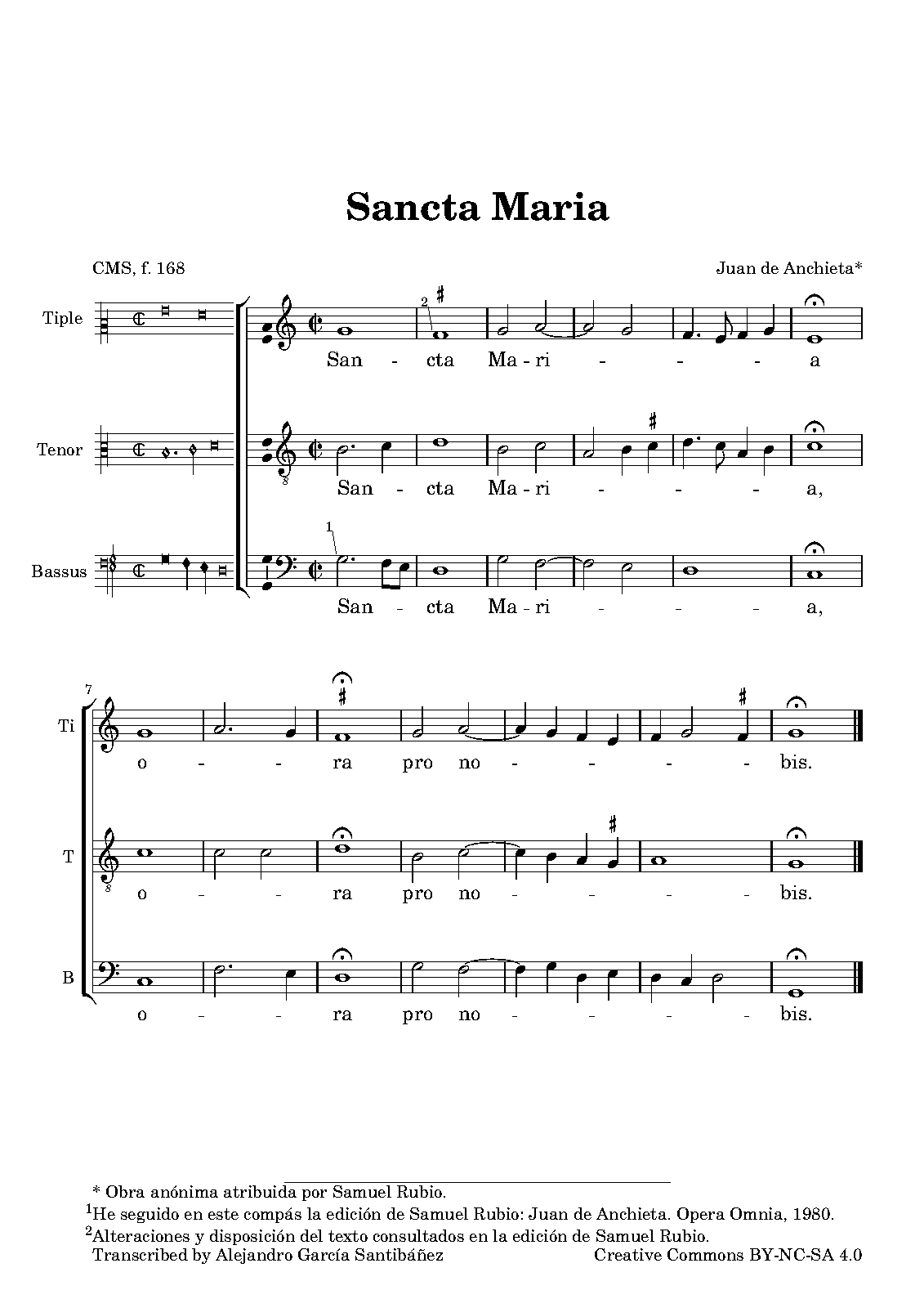 Anonymous piece atributed by Samuel Rubio: Juan de Anchieta. Opera omnia. Caja de Ahorros Provincial de Guipúzcoa, 1980.