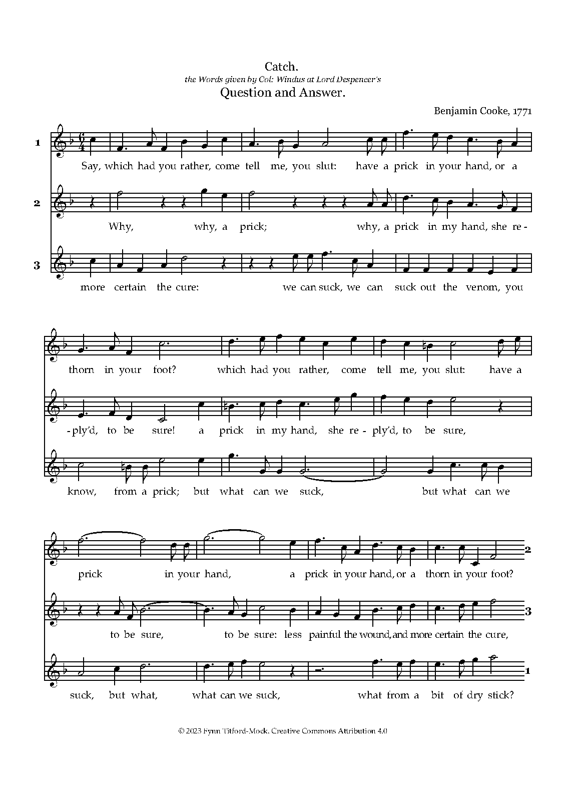 | Genre Categories | Catches; For 3 equal voices; Scores featuring the voice; |