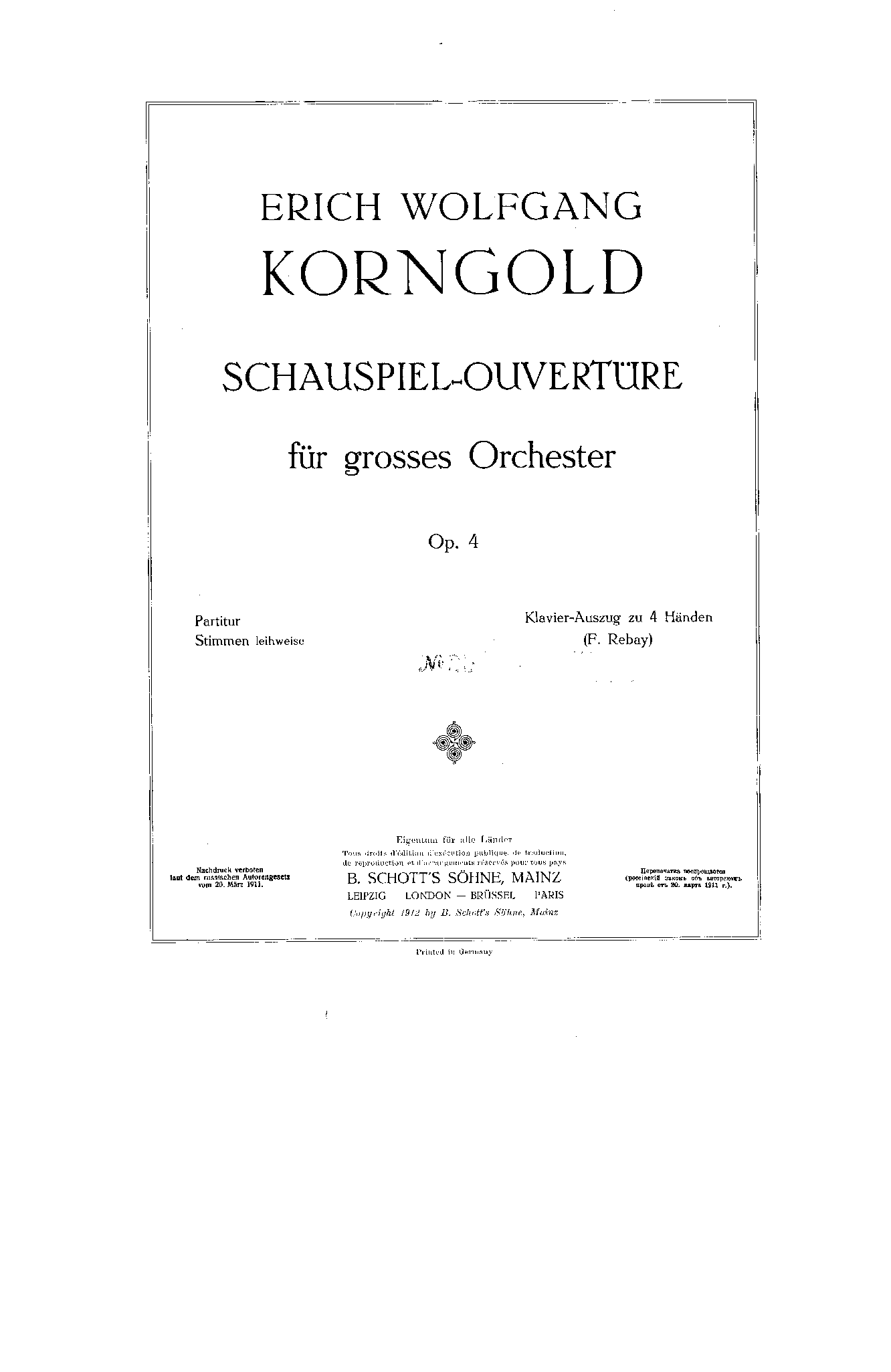 | First Publication | 1912 – Mainz: B. Schott's Söhne |