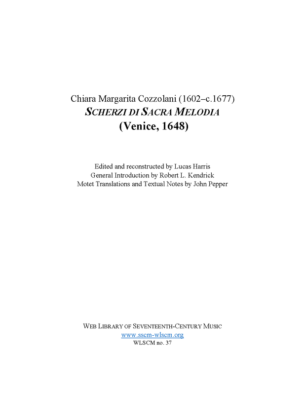 | Genre Categories | Motets; For voice, continuo; For voices with continuo; |
