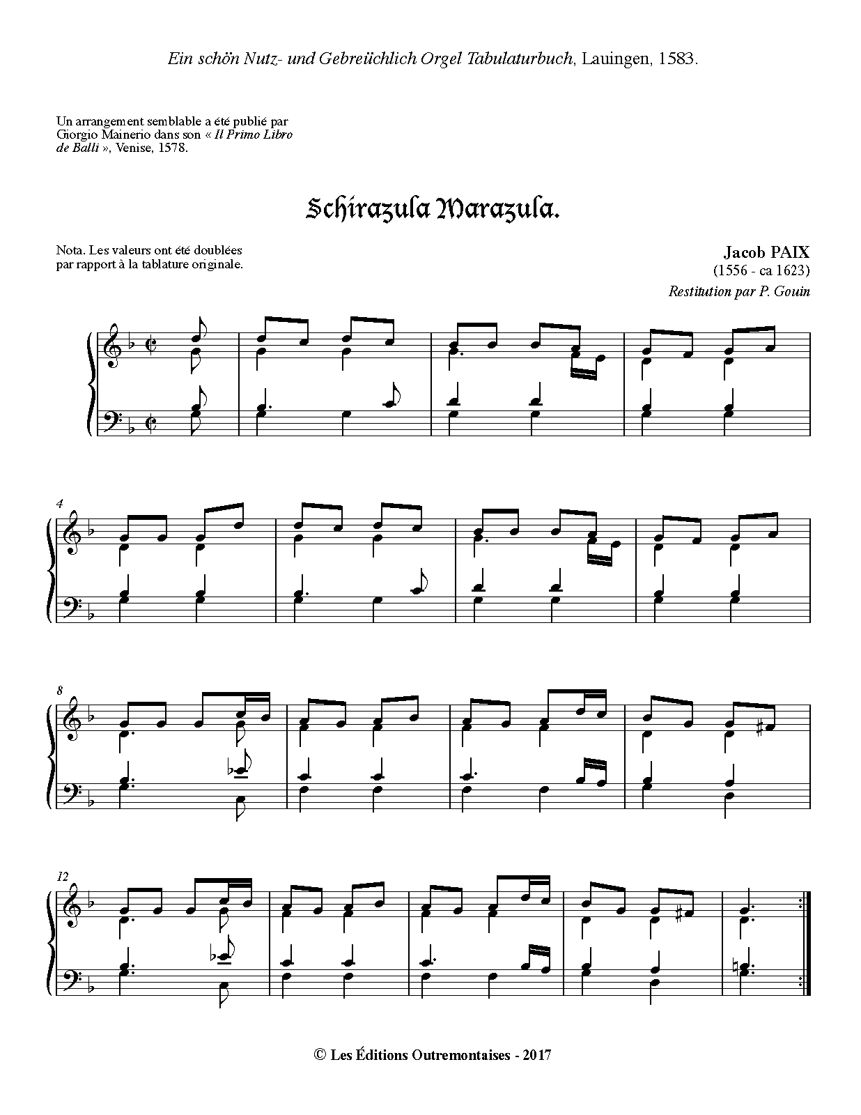 | Extra Locations | Ein Schön Nutz unnd Gebreüchlich Orgel Tabulaturbüch (Paix, Jakob), 1583, Lauingen. (no.93) |
