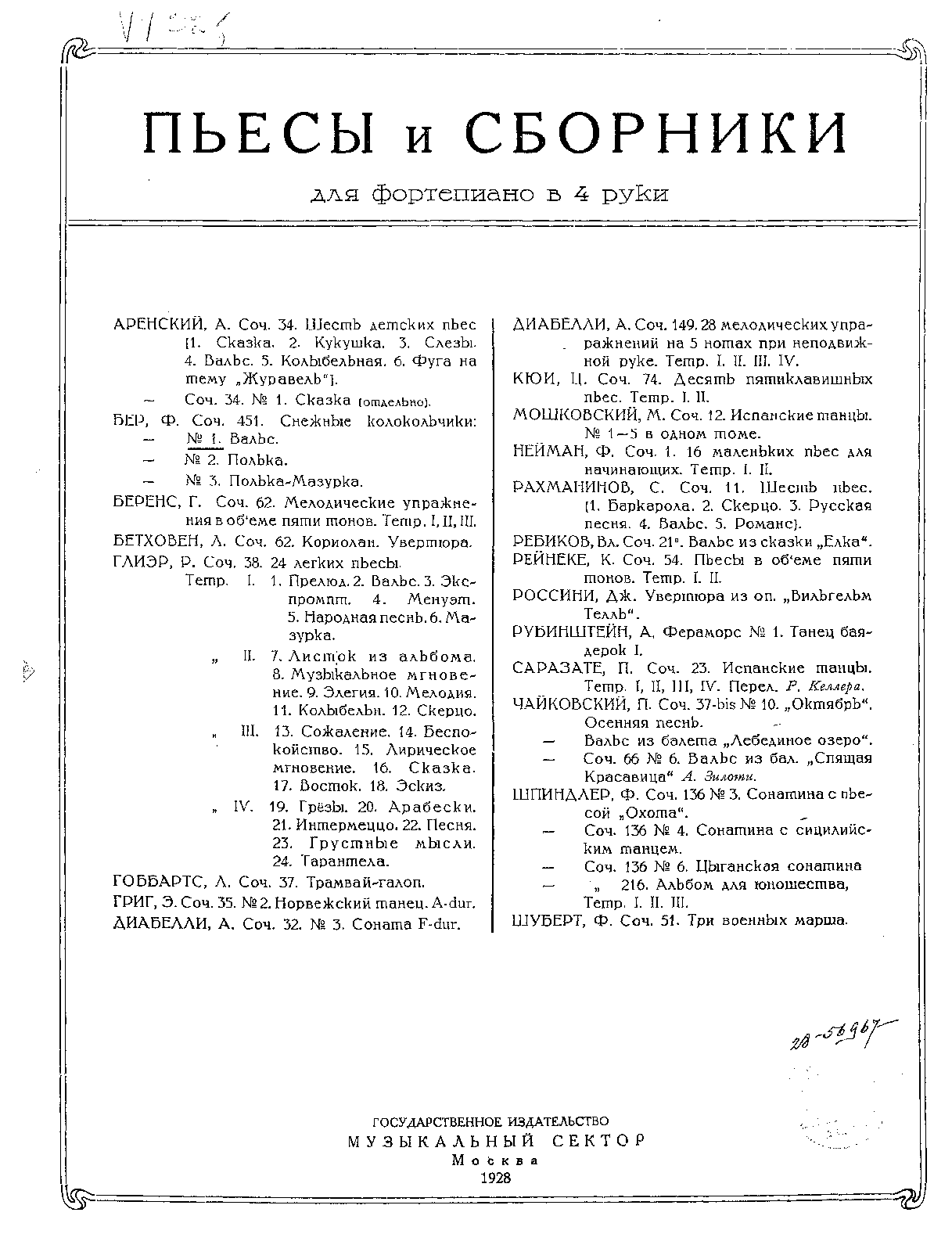 Reprinted Moscow: Muzgiz, 1928. Plates 8653, 8655.
