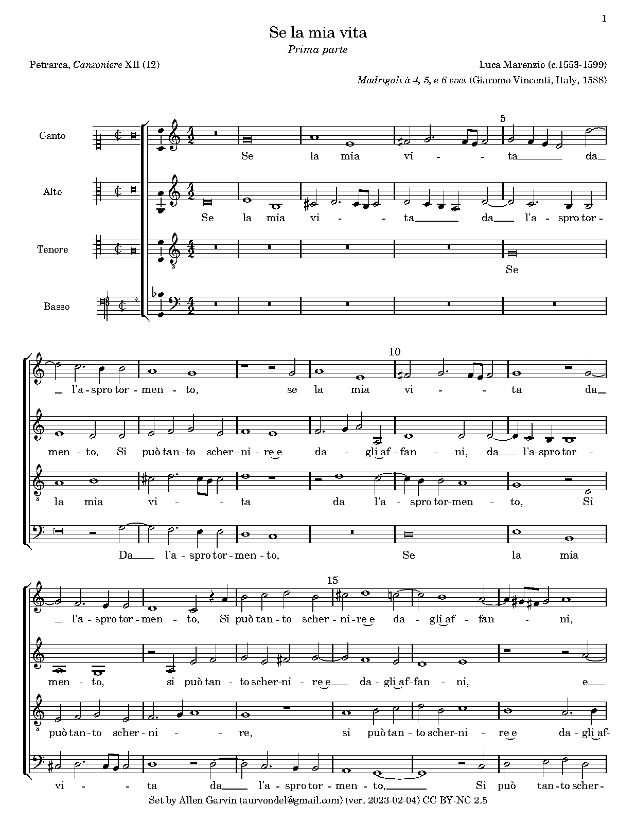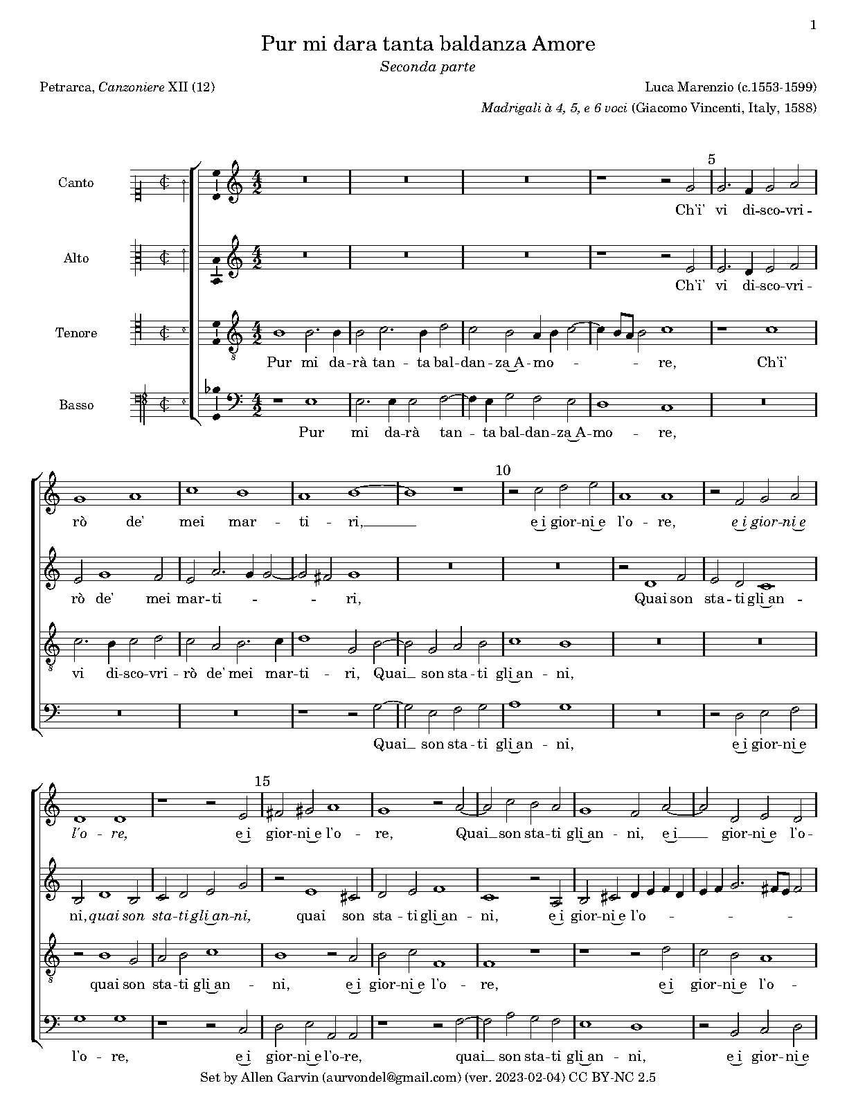 | First Publication | 1588 in Madrigali a quattro, cinque e sei voci (Venice: Vincenti press) |
