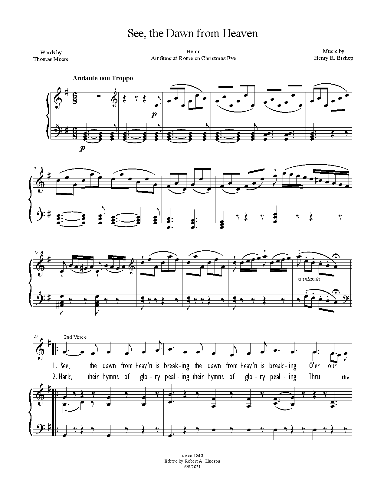 | Alternative. Title | Hymn, See the Dawn from Heaven, Air Sung at Rome on Christmas Eve, a popular national melody |