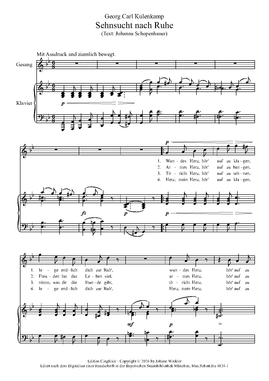 Alternative. Title Wundes Herz, hör' auf zu Klagen