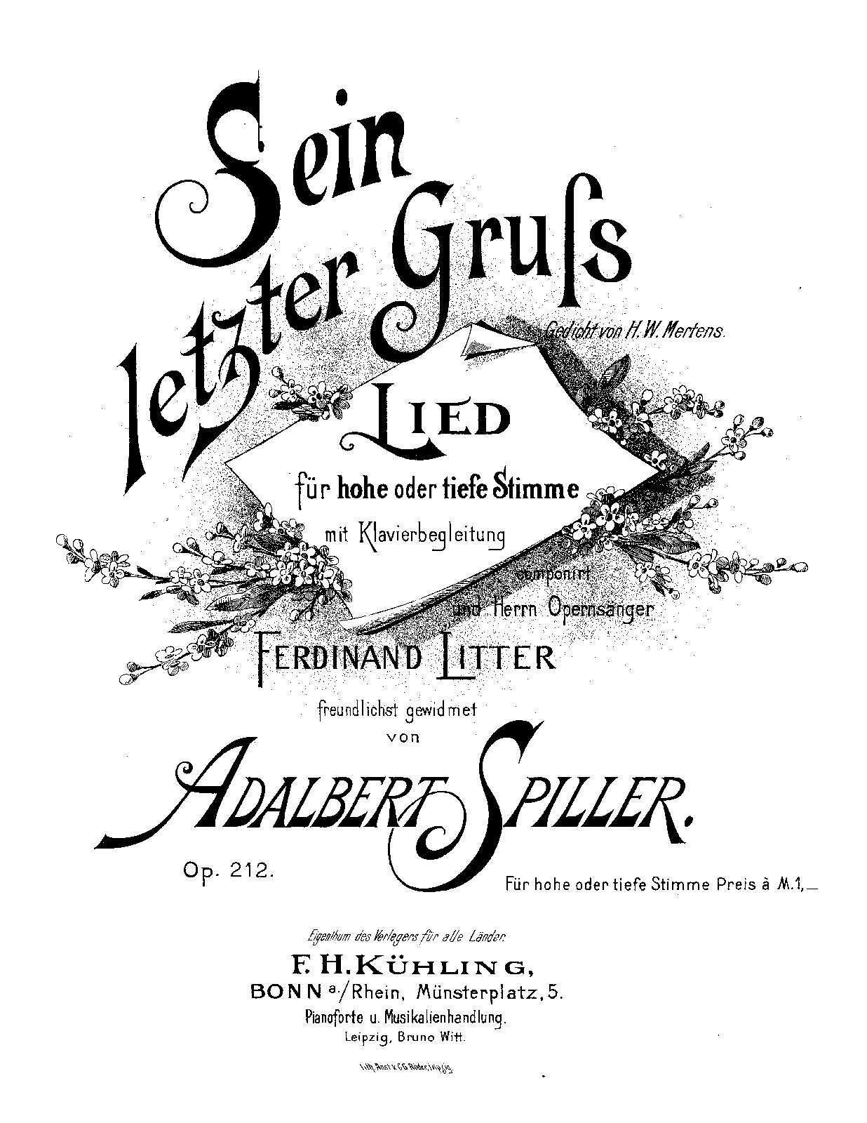 | Dedication | Herrn Opernsänger Ferdinand Litter freundlichst gewidmet |