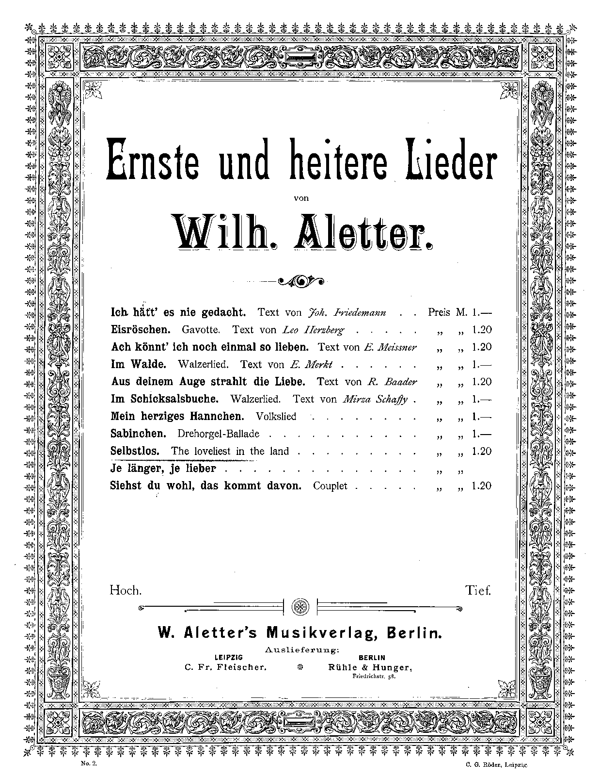 | Genre Categories | Lieder; Songs; For voice, piano; |