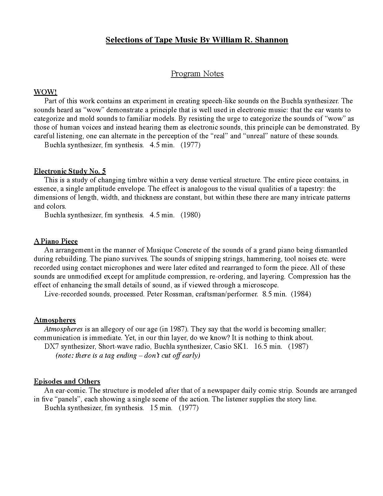| Genre Categories | Pieces; For tape; Scores featuring electronic sounds; |