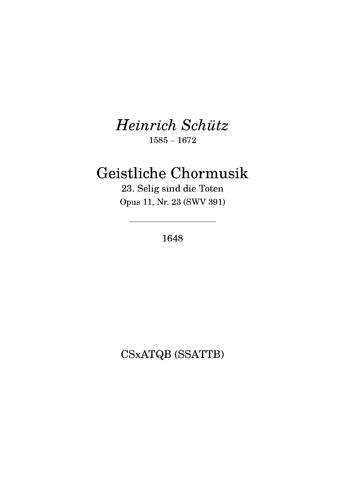 | First Publication | 1648 in Geistliche Chor-Music, Op.11 (No.23) |