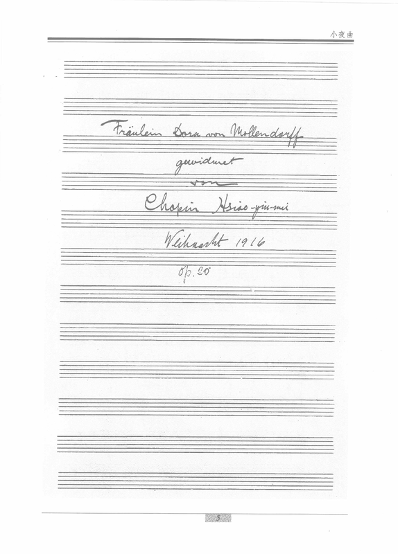 | Dedication | Fräulein Dora von Mollendorf gewidmet |