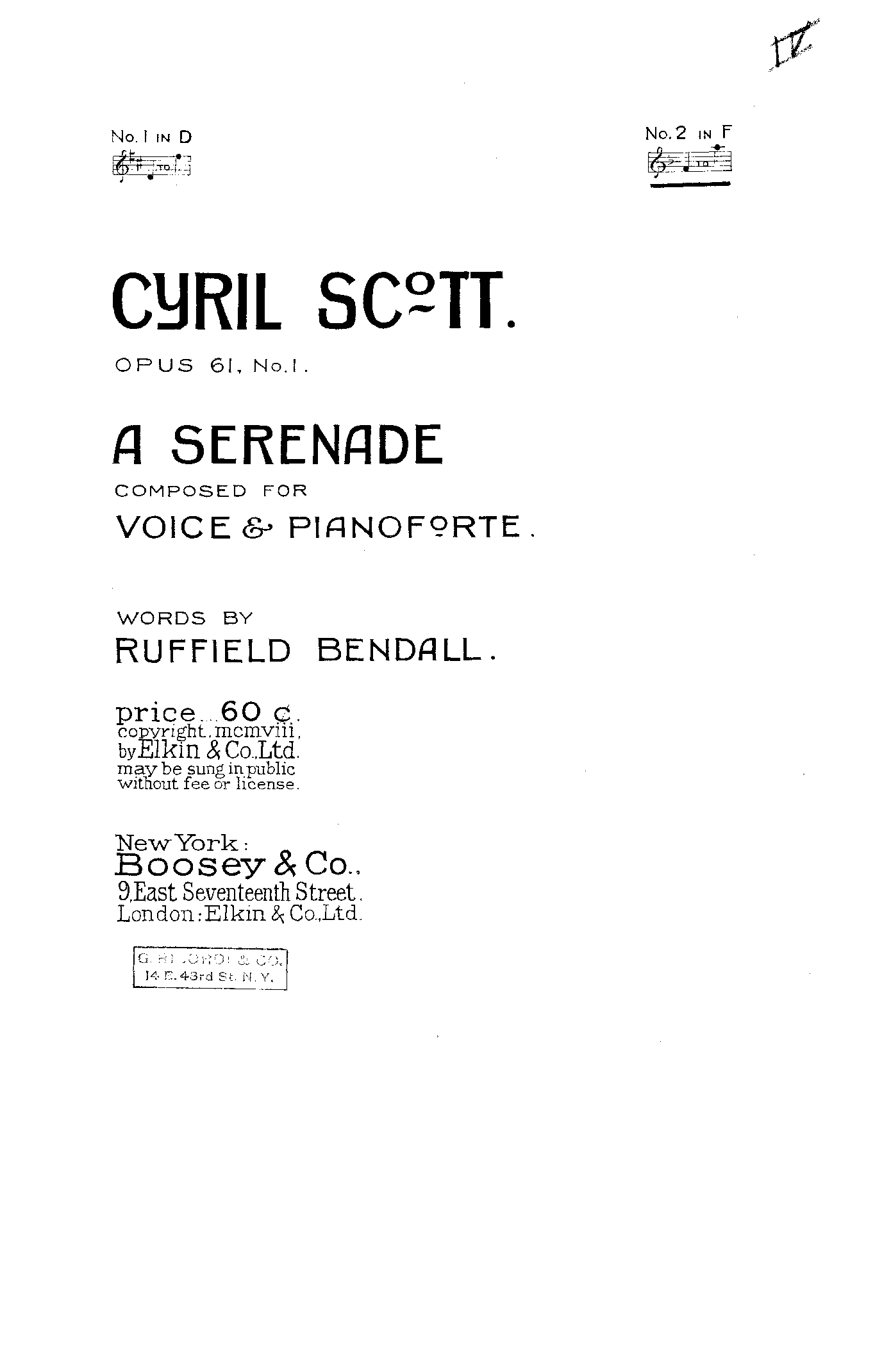 | Genre Categories | Songs; For voice, piano; For voices with keyboard; |