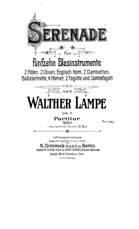 Serenade for Winds, Op.7 (Lampe, Walther)