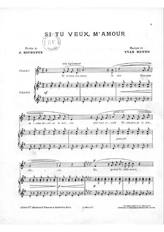 From a set of Verlaine, Heine and Richepin mélodies to music by Renno (see p. 3 of PDF).