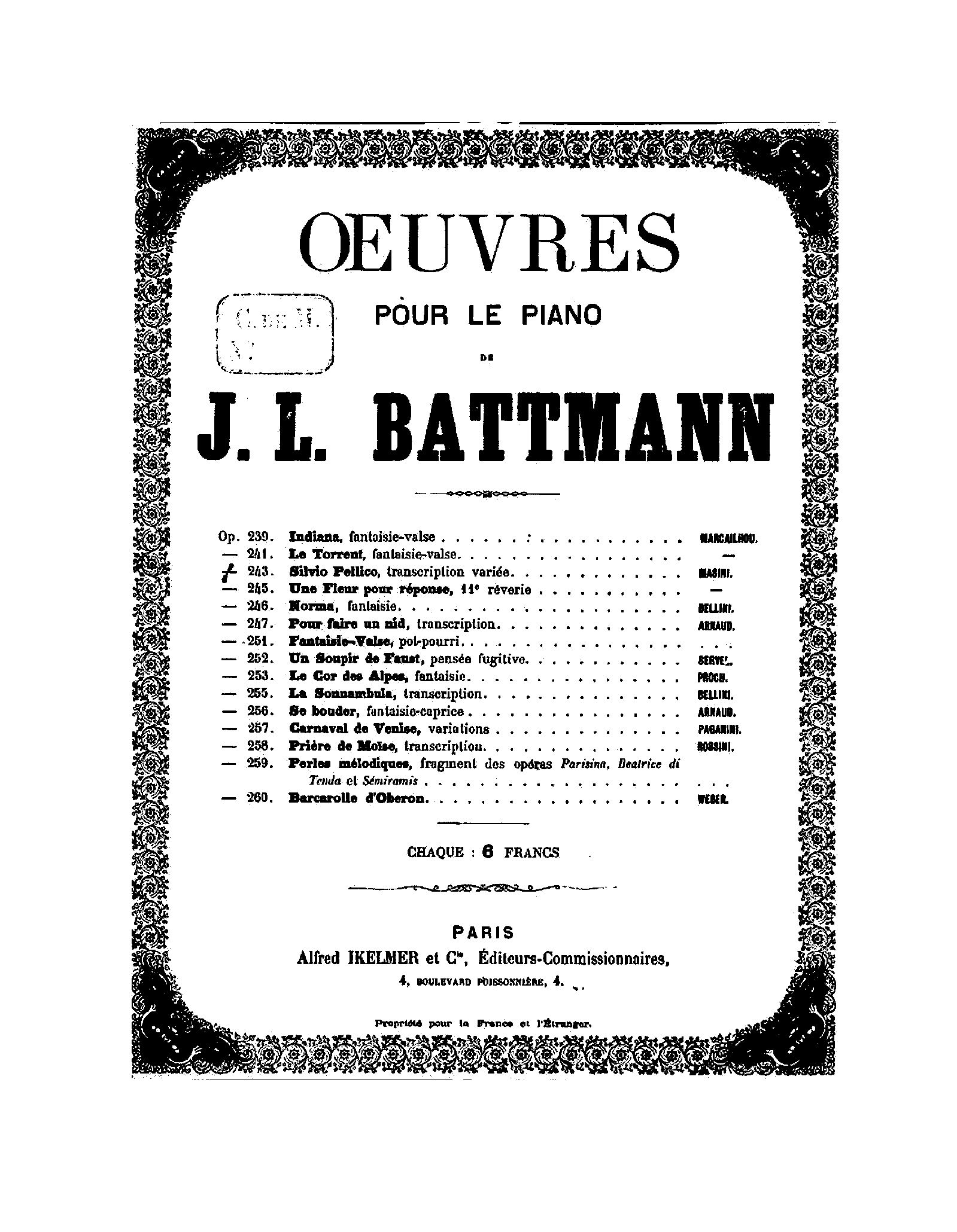 | Composer | Battmann, Jacques-Louis |