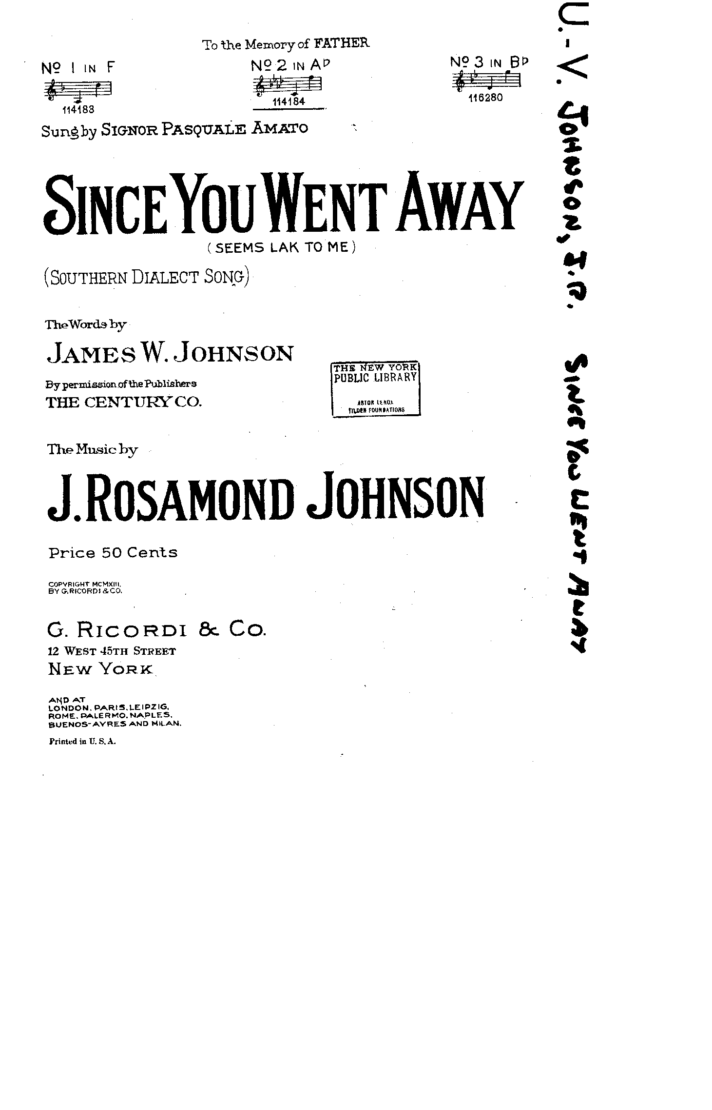 Publisher. Info. New York: G. Ricordi & Co., 1913. Plate 114184