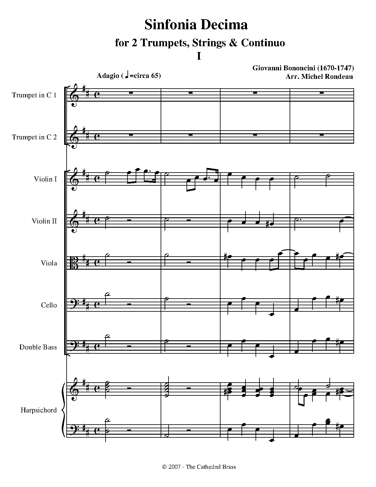 | Genre Categories | Sinfonias; For 2 trumpets, 2 violins, viola, cello, continuo; Scores featuring the trumpet; |