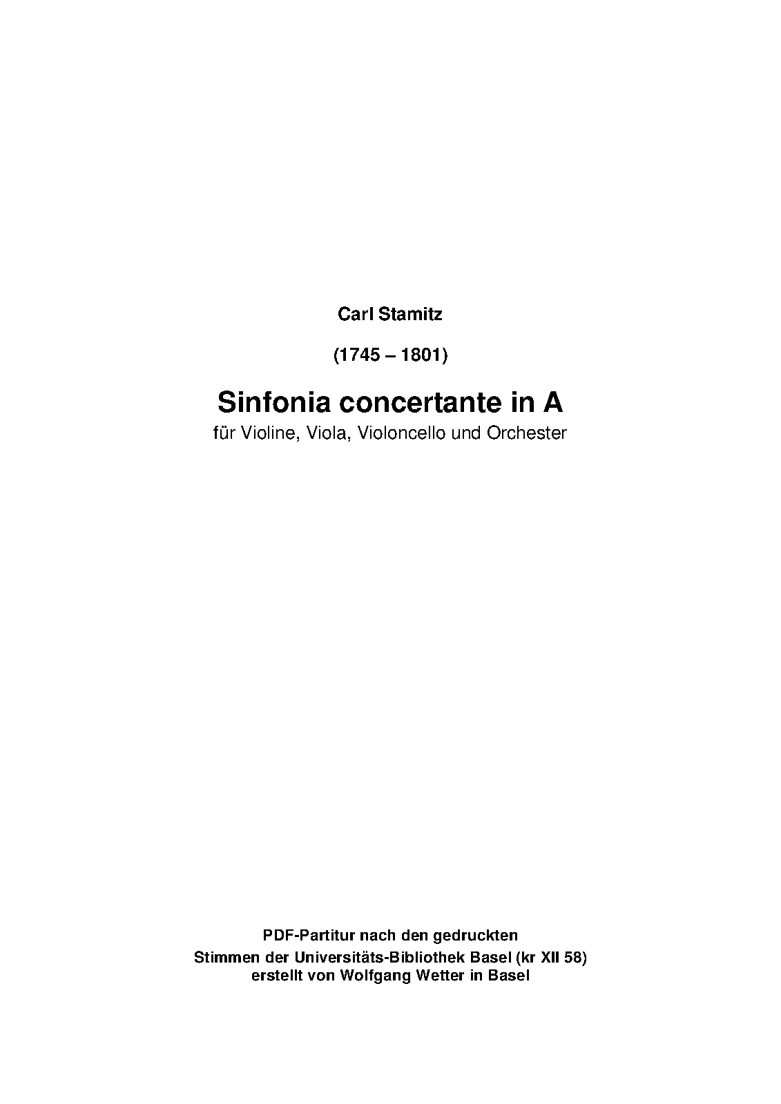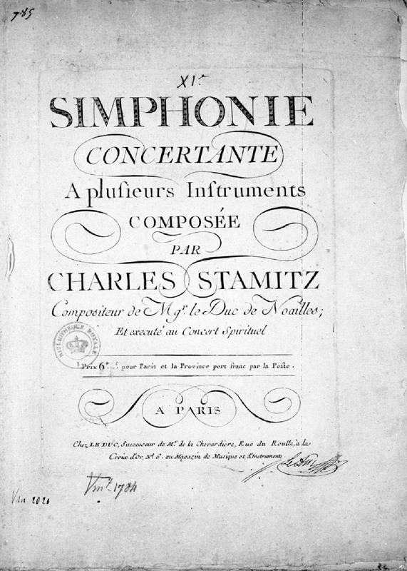| Alternative. Title | Simphonie Concertante a plusieurs instruments ; Sinfonia Concertante à Violino, Violoncello è Viola Conc:te - Violini Clarinetti Corni Viola e Basso |