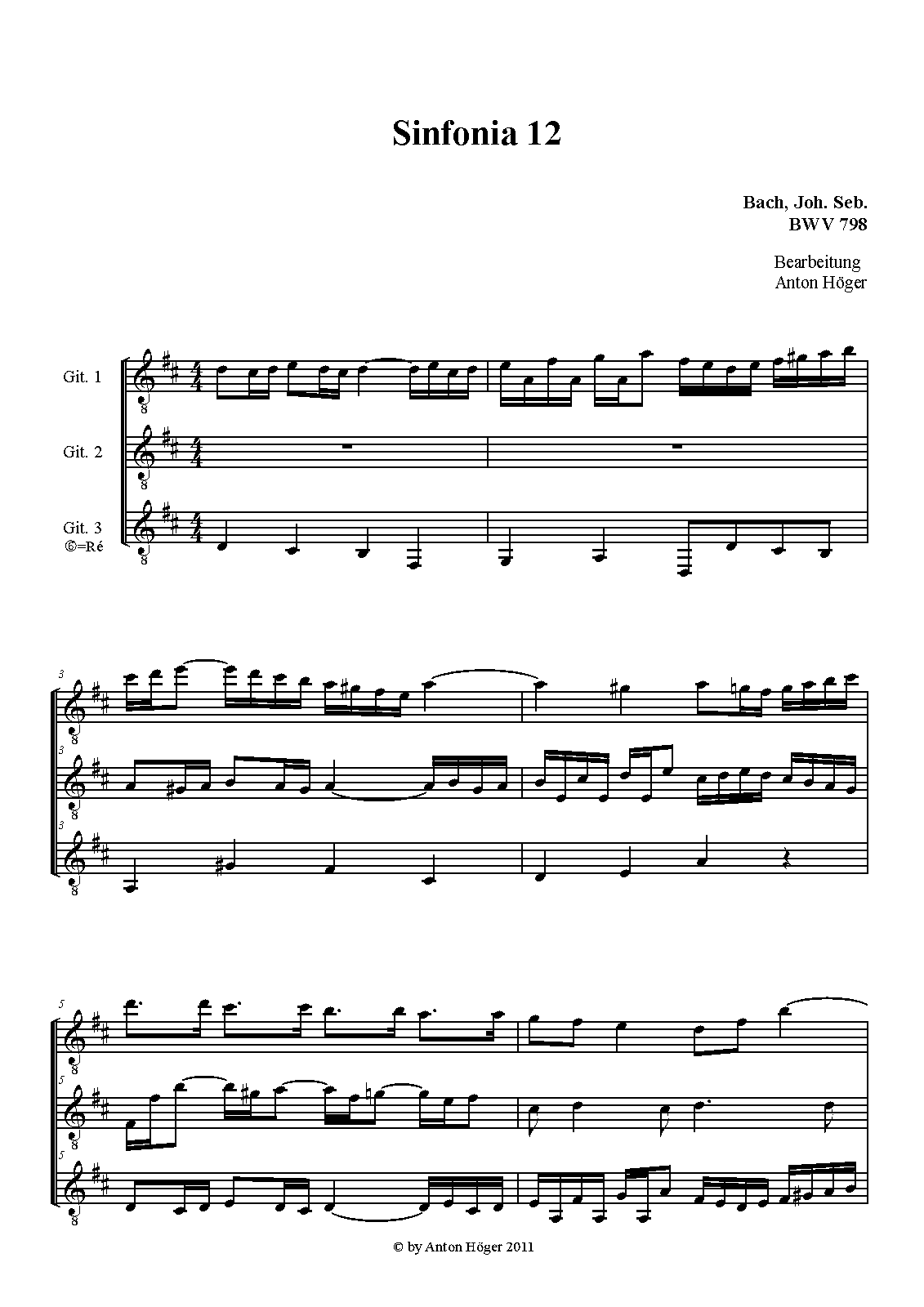 First Publication. 1801 in 15 Sinfonias, BWV 787-801 (No.12)