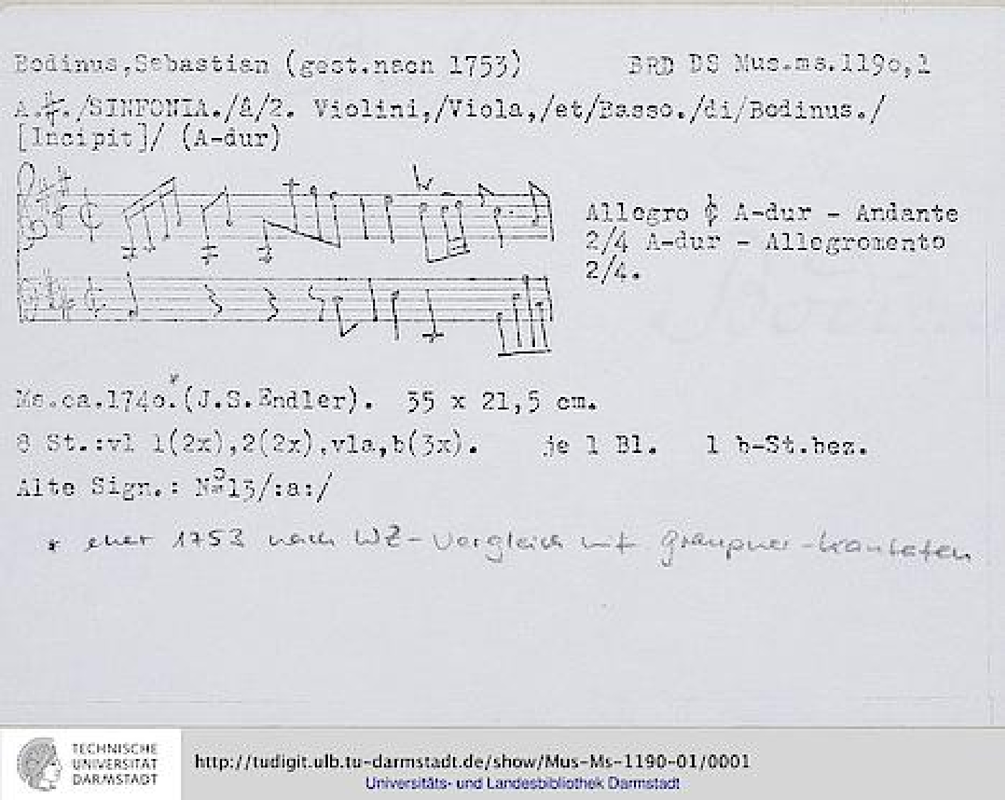| Work Title | Sinfonia in A major, ULB Mus Ms 1190-01 |