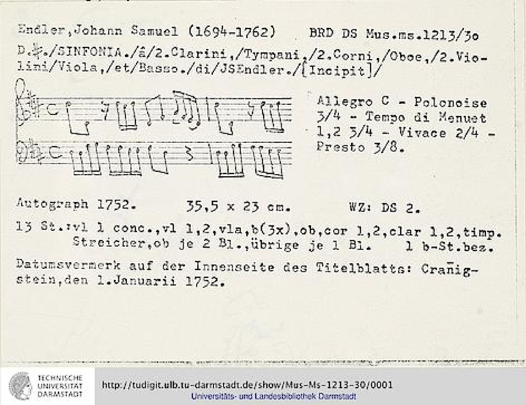 Sinfonia in D major, CobE 30 (Endler, Johann Samuel)