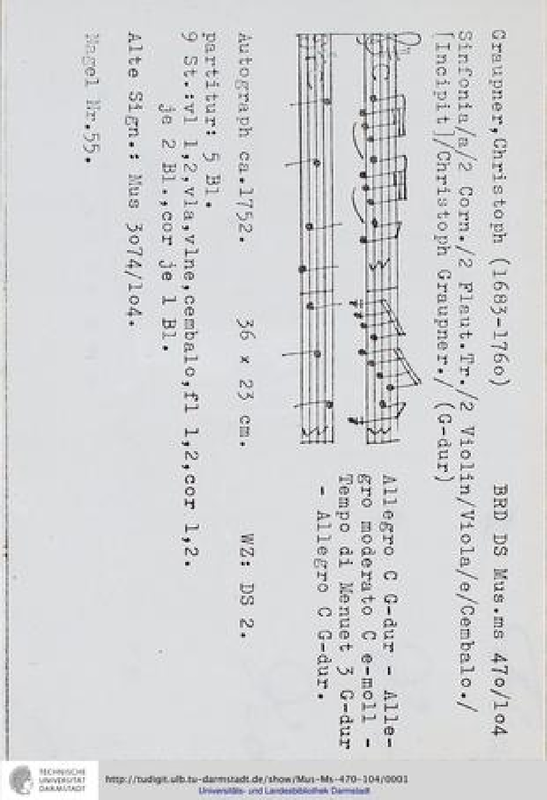 | Opus/Catalogue NumberOp./Cat. No. | GWV 605 |