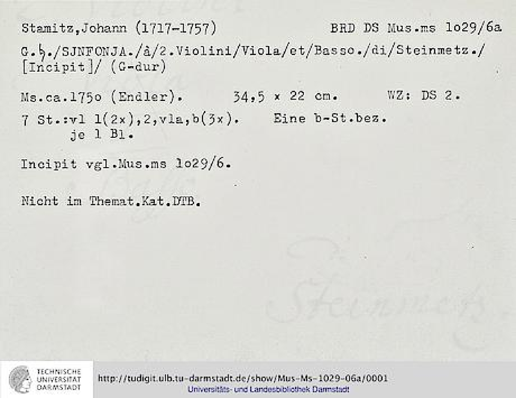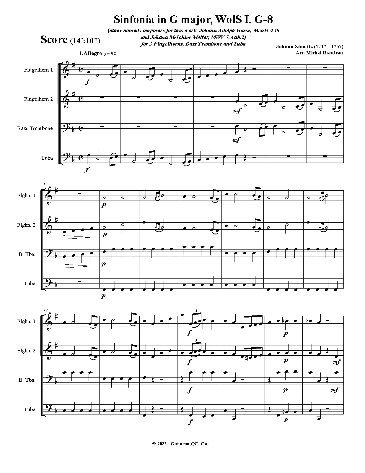 | Authorship Note Composer may be Johann Stamitz (WolS I. G-8) or Johann Adolph Hasse (MenH 4.30). Another named composer is Johann Melchior Molter (MWV 7.Anh.2). |