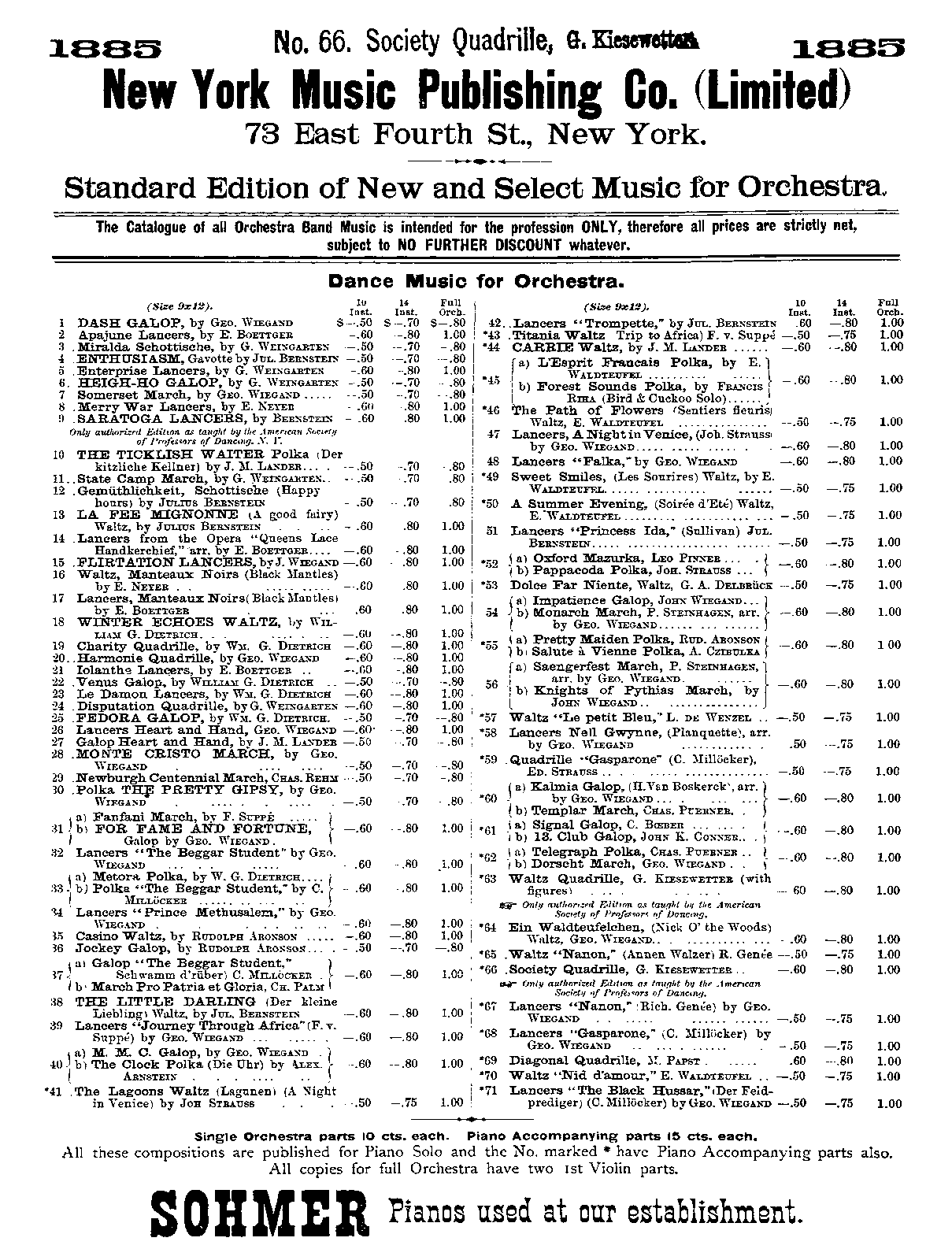 | First Publication | 1885 – New York: New York Music Publishing Co. (Limited) |
