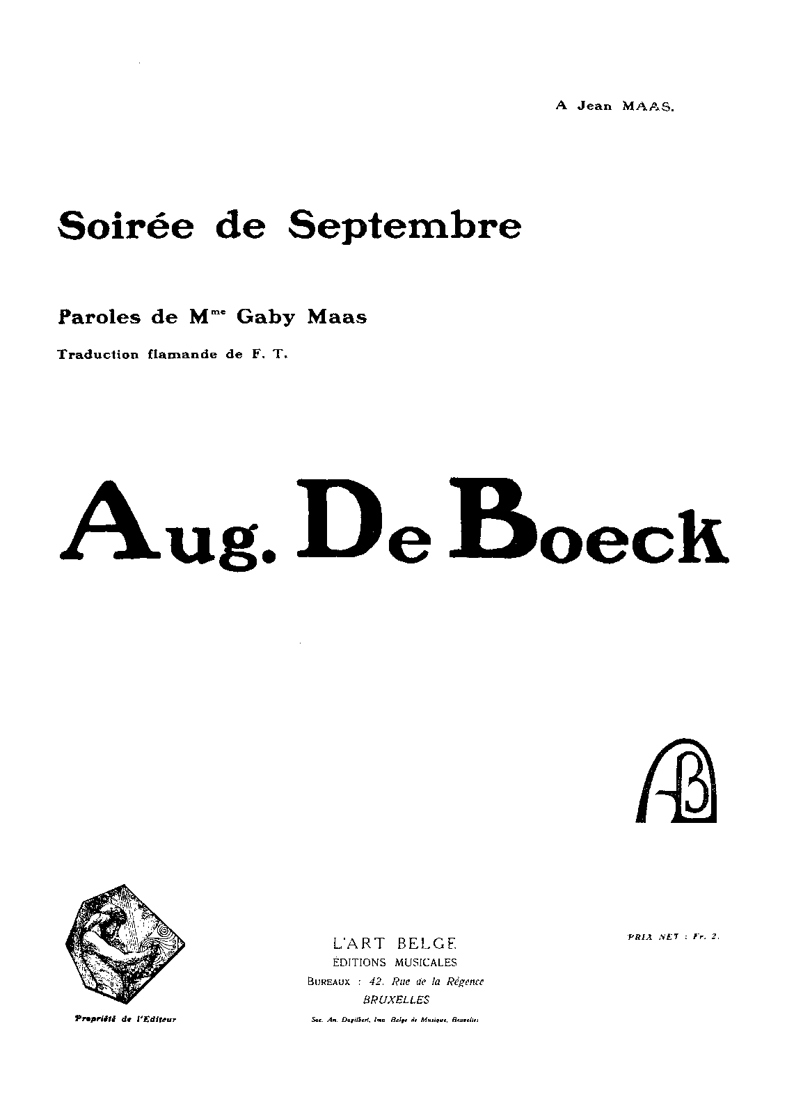 | Extra Information | Composition & publication dates according to Geeurickx E. Catalogus van de werken van August de Boeck, 1990 |