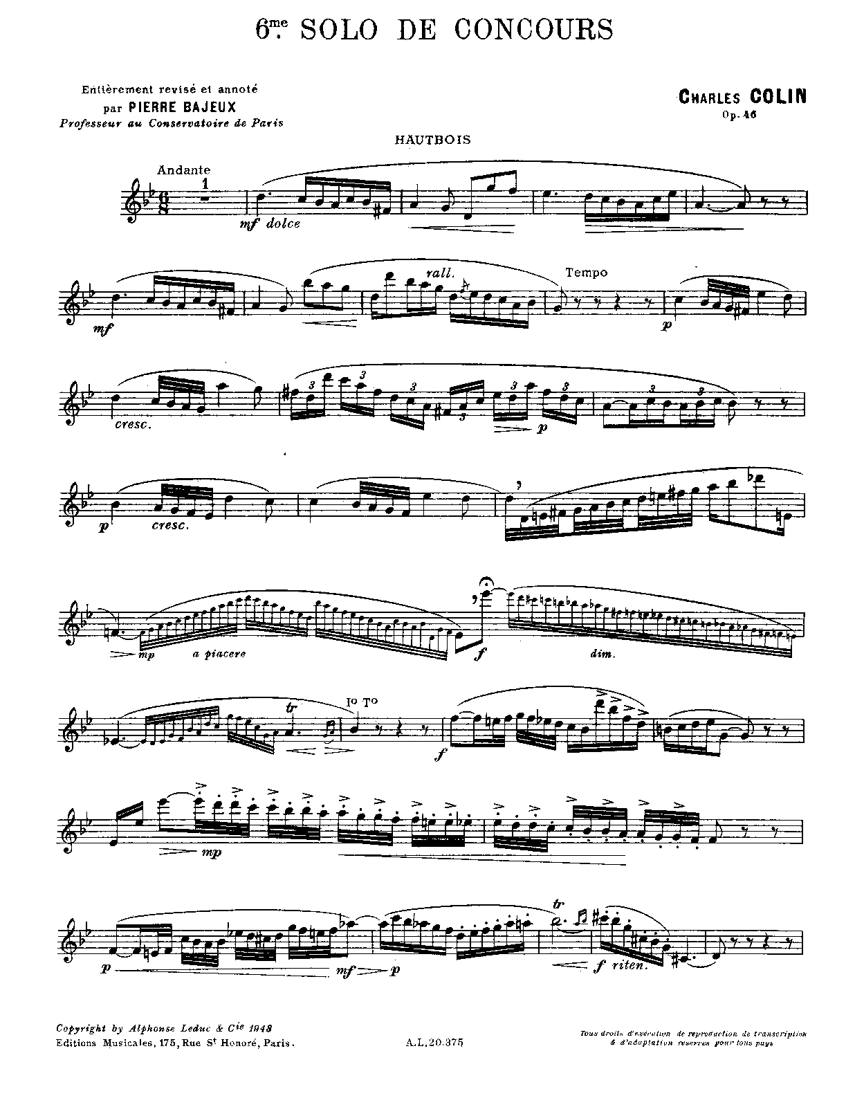 | Work Title | 6ème solo de concours |