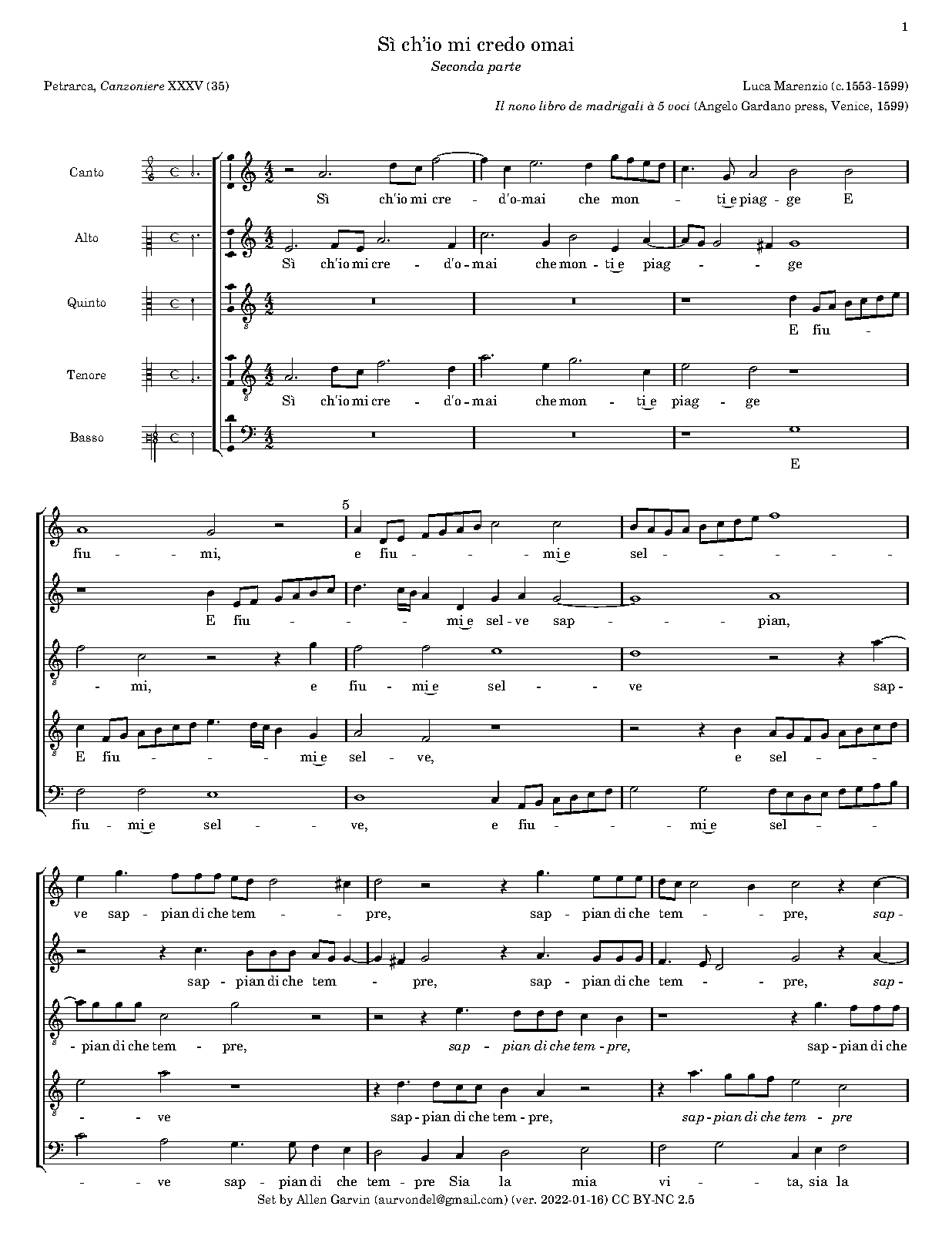 | First Publication | 1599 in Madrigali a 5 voci, Libro 9 |