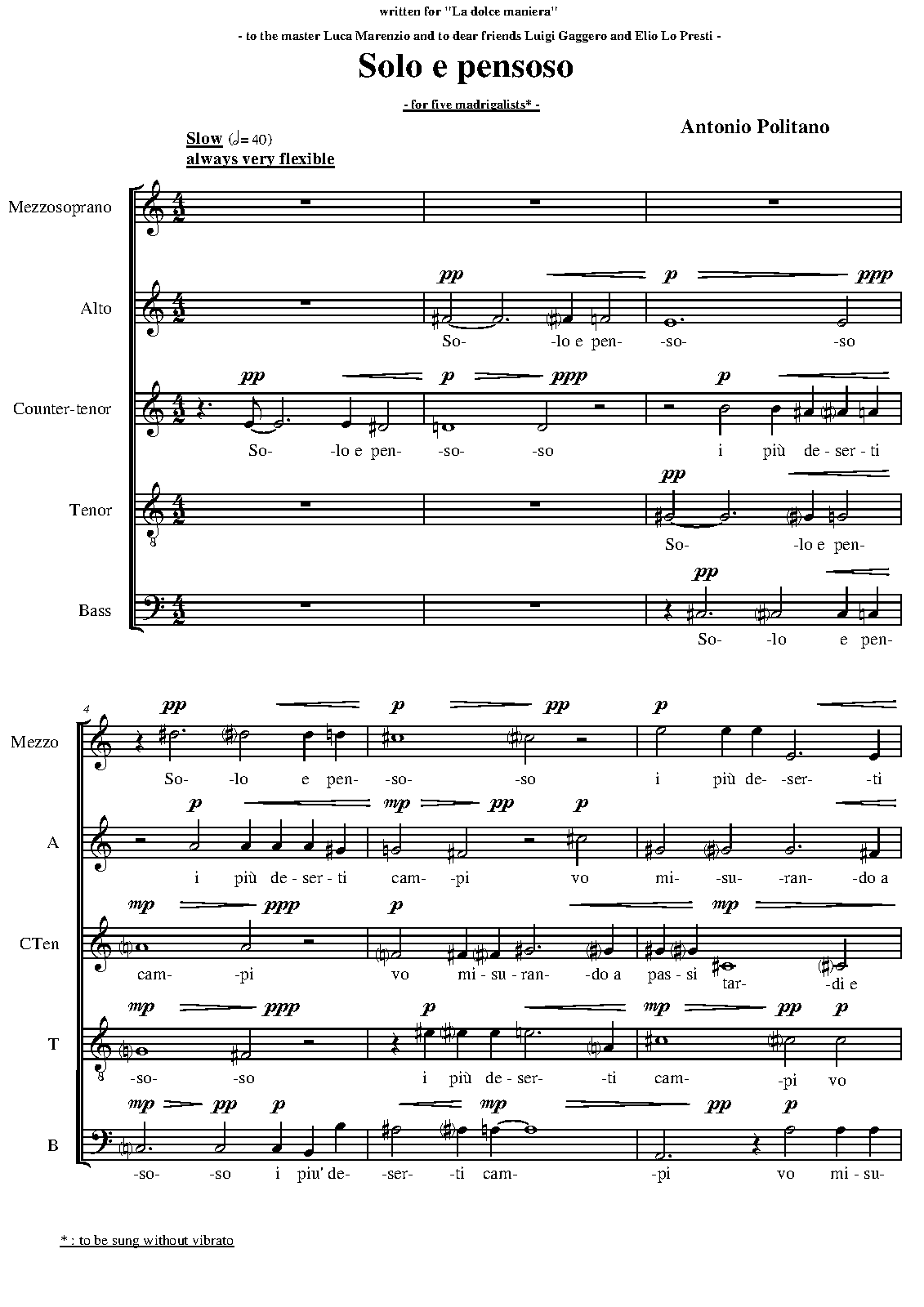 | Dedication | To the master Luca Marenzio and to dear friends Luigi Gaggero and Elio Lo Presti |