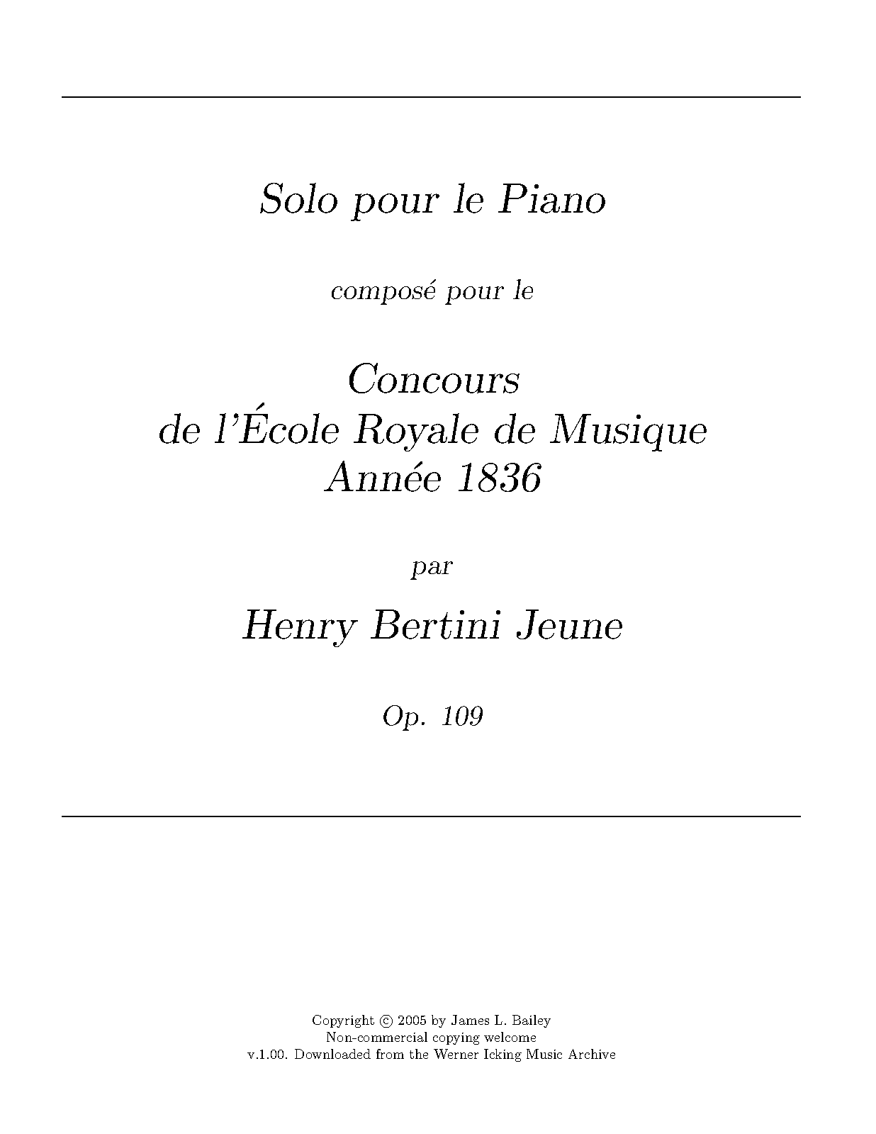 Solo pour le Piano composé pour le Concours de l’École Royale de Musique Année 1836