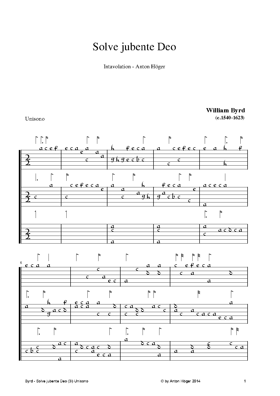 Intabulation in french Lute-tabulature for 3 lutes (Unisono). It is a two voice Intavolation (not only) for studying purposes. If performed I would look forward about a small reference to my efforts.