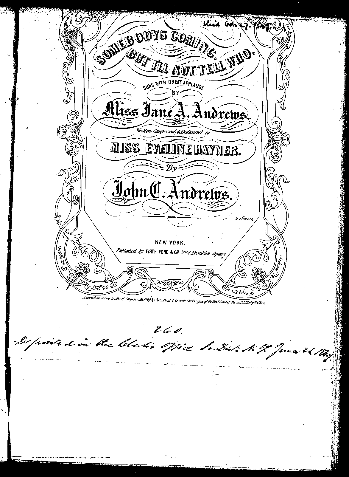 | Work Title | Somebody's Coming, But I'll Not Tell Who |