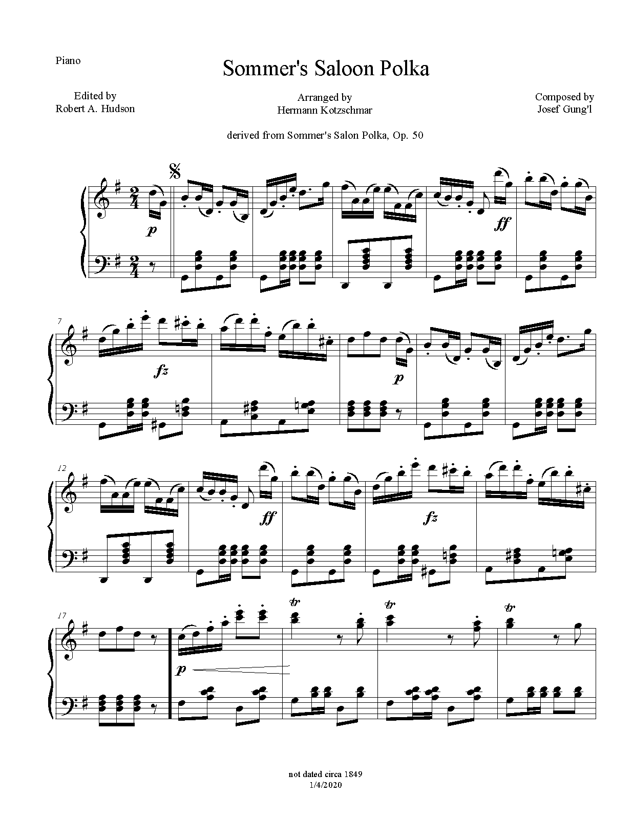 | Extra Information | derived from Sommer's Salon Polka, Op. 50 |