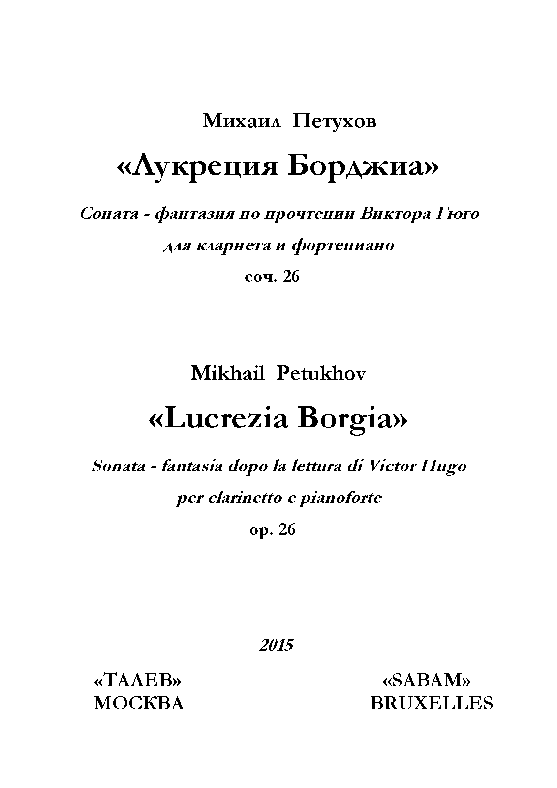 | Work Title | "Lucrezia Borgia" Sonata-Fantasia dopo la lettura di Victor Hugo per clarinetto e pianoforte |