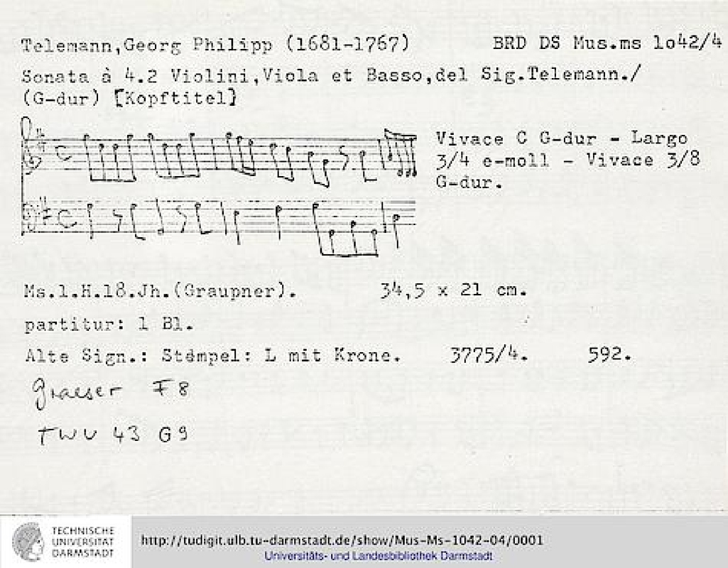 | Opus/Catalogue NumberOp./Cat. No. | TWV 43:G9 |