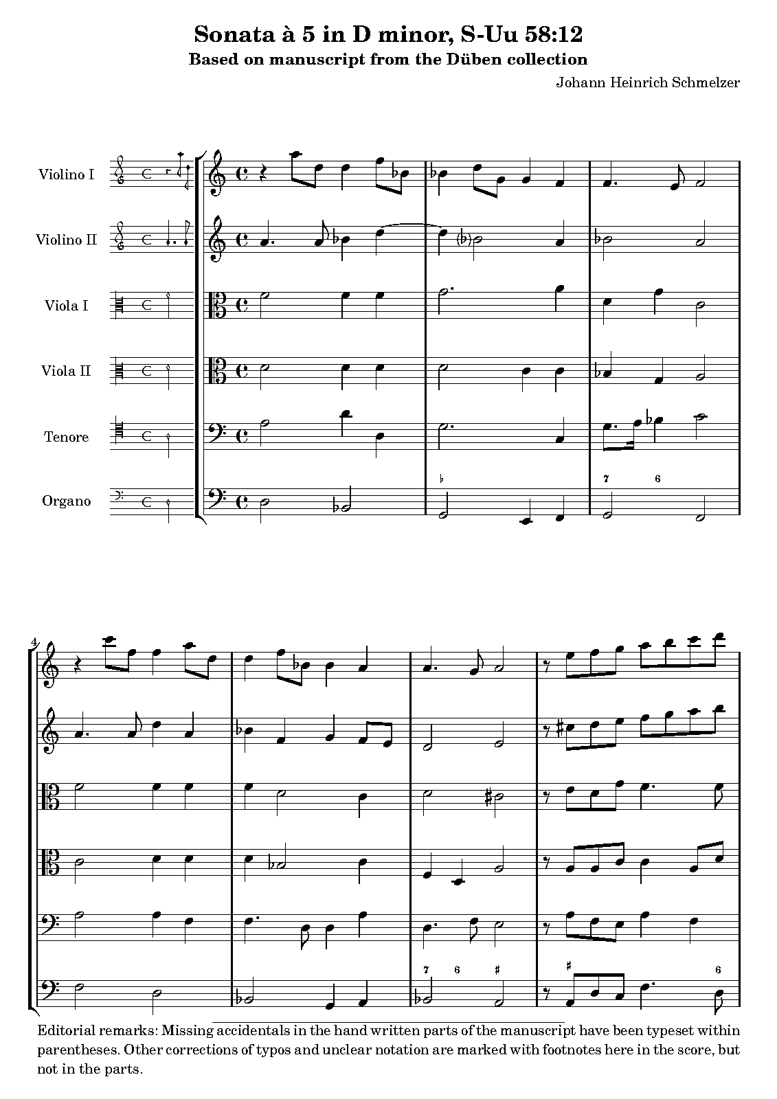 2 violins, 2 violas, & "tenor", continuo (see below)