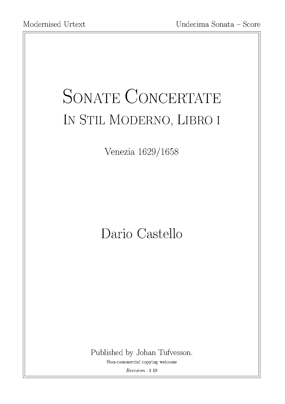 | First Publication | 1621 in Sonate concertate in stil moderno, libro primo (No.11) |